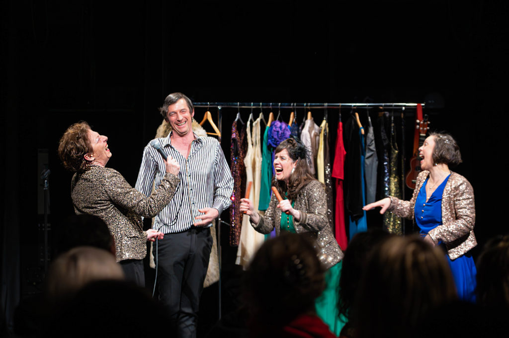 Chants, danses et petits numéros s’enchaînent avec humour et énergie, dans une mise en scène où l’imagination fait le reste : palmiers de lumière, cocktails et orchestre prennent vie sous les récits de Gloria. Un cabaret itinérant plein de fantaisie et de bonne humeur.